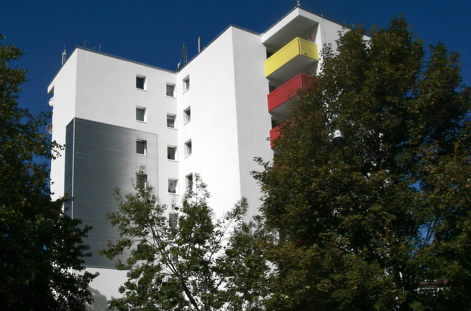 Hohe Aufmerksamkeit wurde verschiedenen Maßnahmen zur Wohnumfeldverbesserung gewidmet: Die stark frequentierte Freifläche vor dem Eingangsbereich und das erdgeschossige Foyer wurden neu strukturiert und umgestaltet, der mangelhafte Brandschutz durch den Einbau von Brandschotts und einer Meldeanlage deutlich verbessert. Sämtliche konstruktiv-technischen als auch kreativen Vorschläge wurden vom Bauherrn nicht nur mitgetragen, sondern auch diskutiert und weiterentwickelt.
