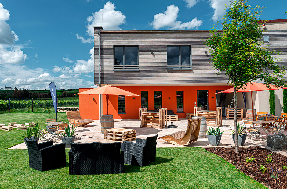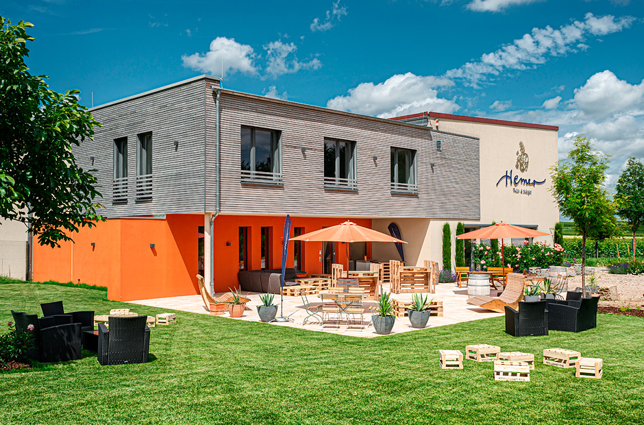 Enge und funktionale Schwächen der Wirtschaftsräume im innerörtlichen Weingut zwangen die Winzer Andreas und Stefan Hemer zur Aussiedlung des Fasslagers, Flaschenlagers und des Mehrzweckbereichs.